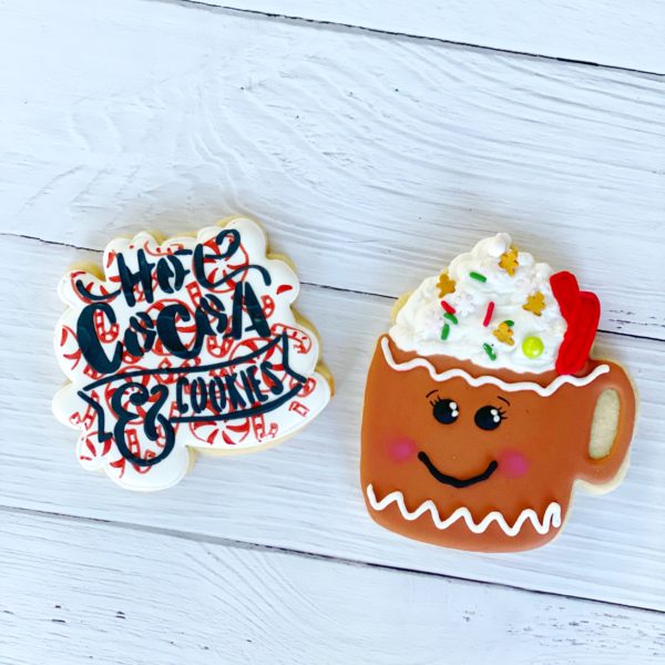 This farmhouse tin bucket has a red ribbon tying on a beautiful metal tag with a holiday sentiment. It is filled with one dozen cookies, 2 chocolate covered spoons, and 2 packs of gourmet hot chocolate.